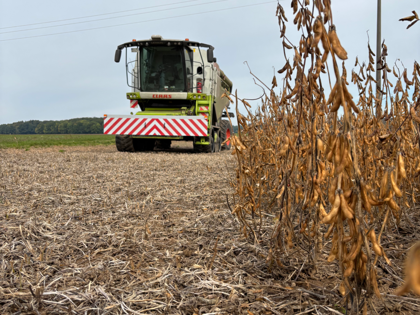 Mit unseren flexiblen MacDon-Schneidwerken, die sich optimal dem Boden anpassen, holen wir selbst tief sitzende Sojafrüchte zuverlässig ab – für höhere Erträge.